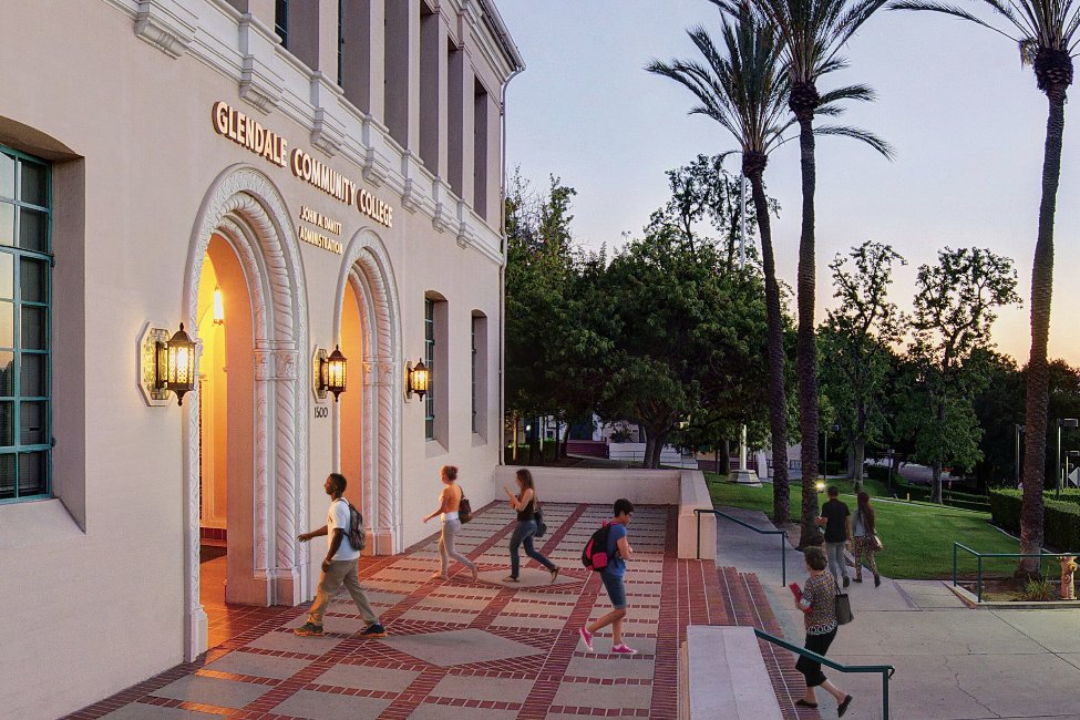 With a blend of the modern and traditional, Glendale College offers a scenic hillside campus on the slopes of the San Rafael Mountains overlooking the valleys in Glendale and parts of the Los Angeles skyline. The campus consists of 100 acres and 25 buildings, including the Science Center complex with Planetarium, and remodeled Student Center/Bookstore, Cafeteria, and Student Services Center building.